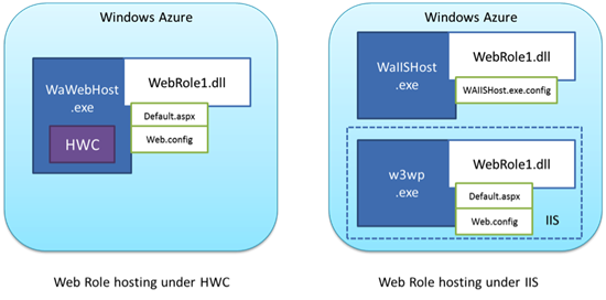 Full IIS in Windows Azure introduces new capabilities, such as hosting multiple web sites within a single web role and advanced IIS configuration. For a discussion of the new full IIS hosting model in Windows Azure SDK 1.3 and how it differs from the Hosted Web Core model used previously, see “New Full IIS Capabilities: Differences from Hosted Web Core” on the Windows Azure blog.